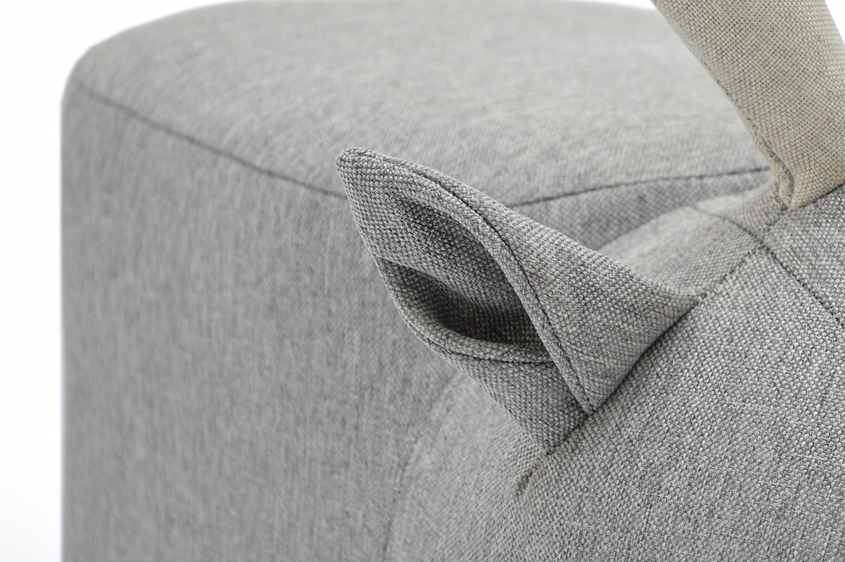 Пуф обшит прочной и экологичной рогожкой серого цвета. Материал натуральный, приятный на ощупь, устойчив к загрязнениям.