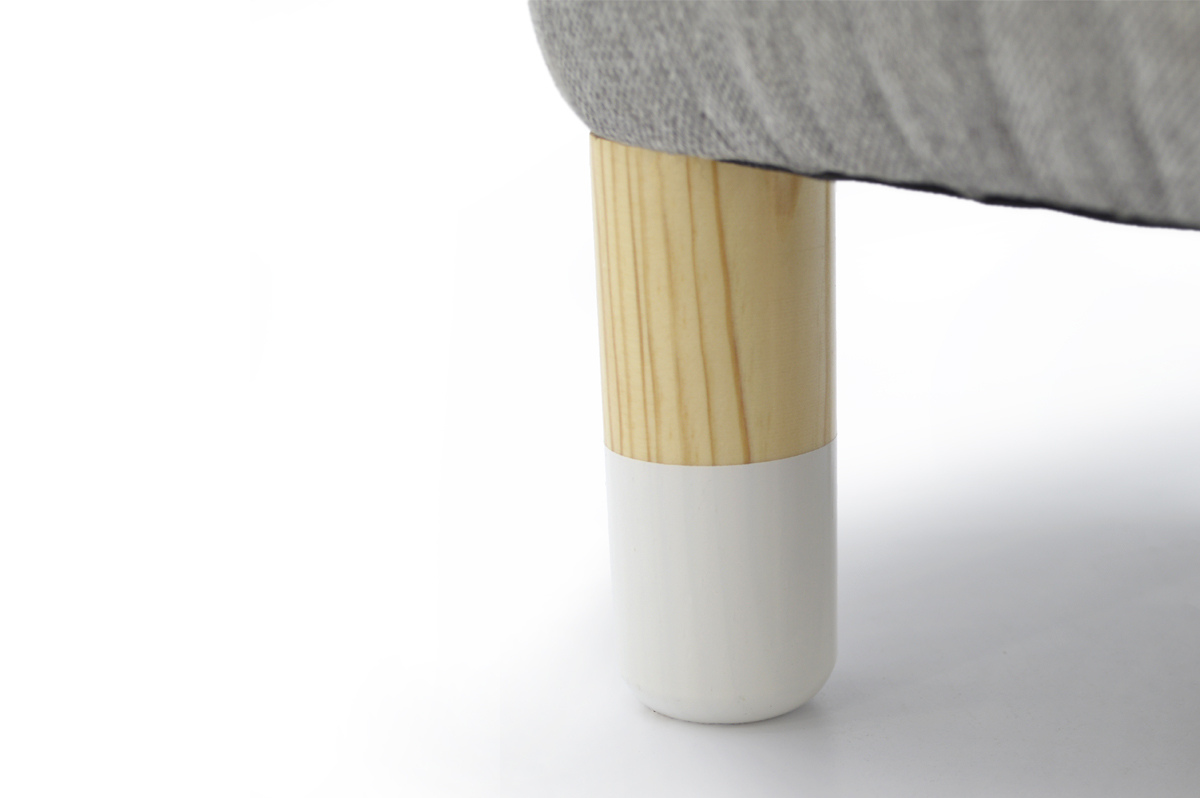 Ножки выполнены из массива сосны, тщательно отшлифованы и покрыты лаком на водной основе. Низ ножек украшают белые “носочки”, покрашенные эмалью на водной основе. Все используемые при производстве материалы полностью экологичны и безопасны.