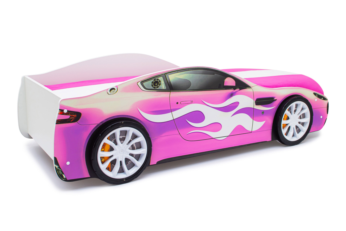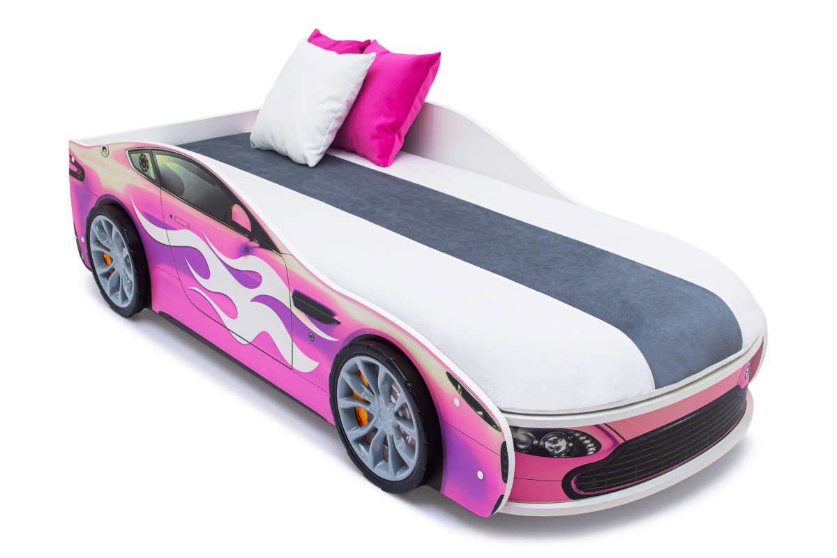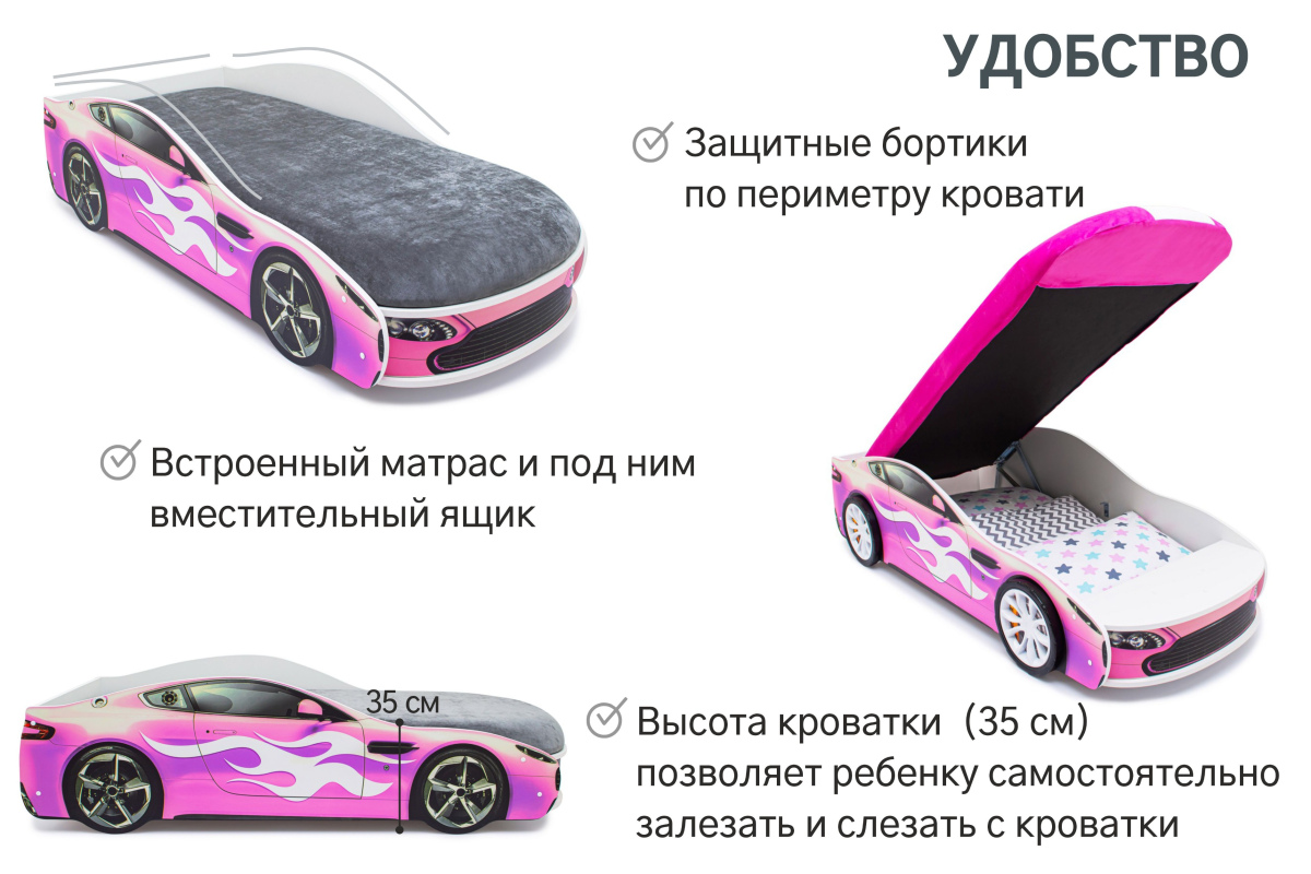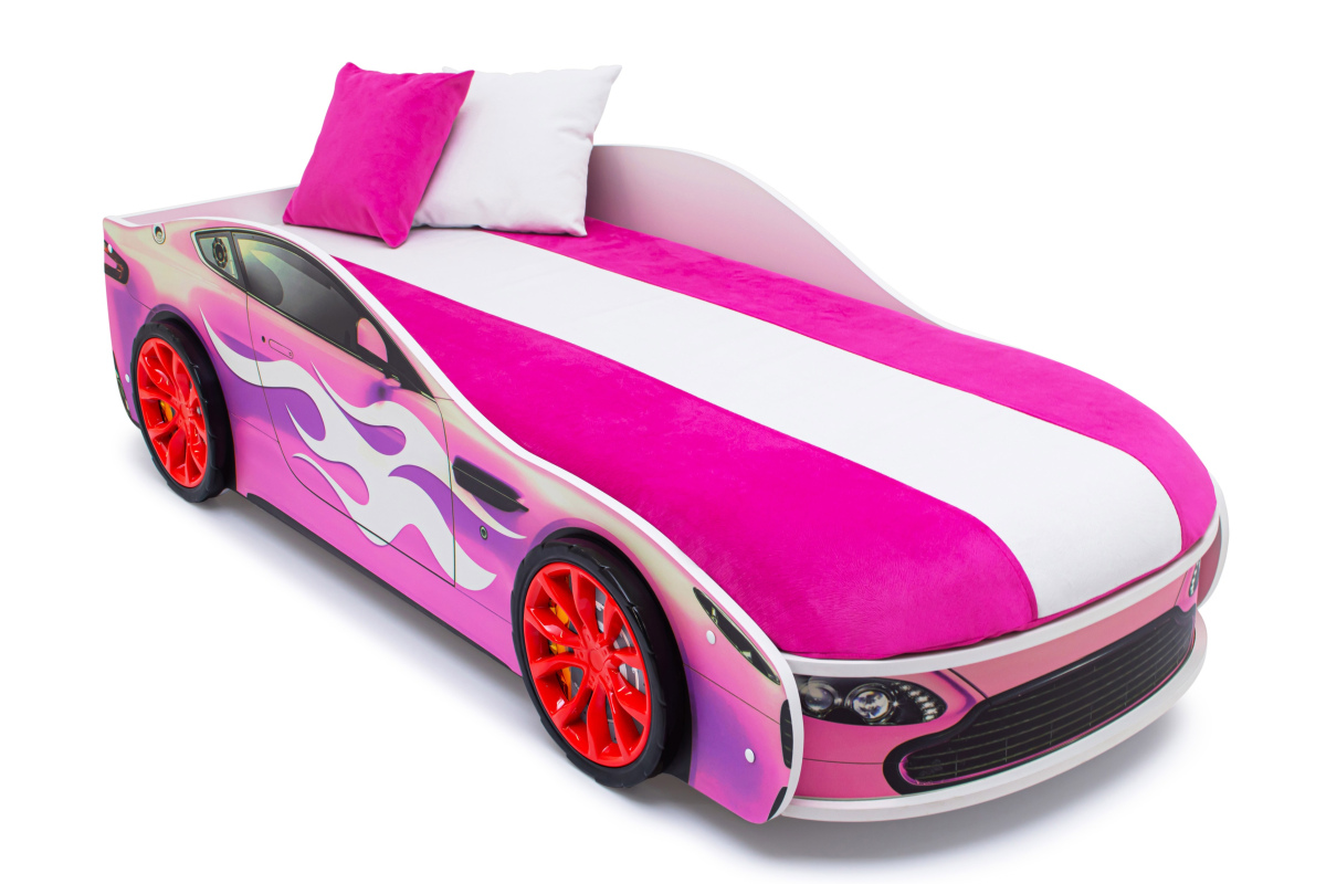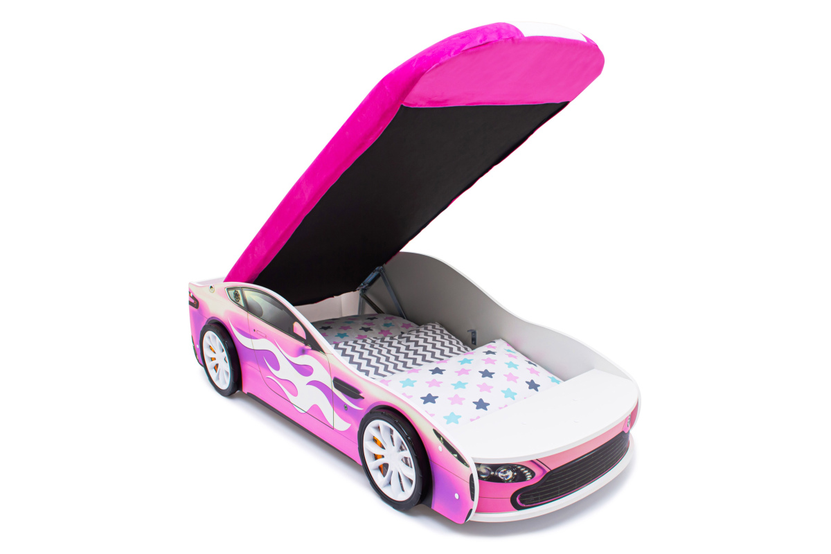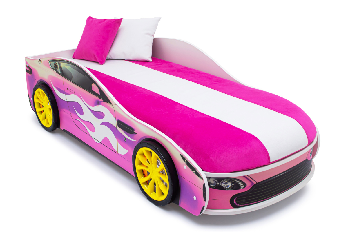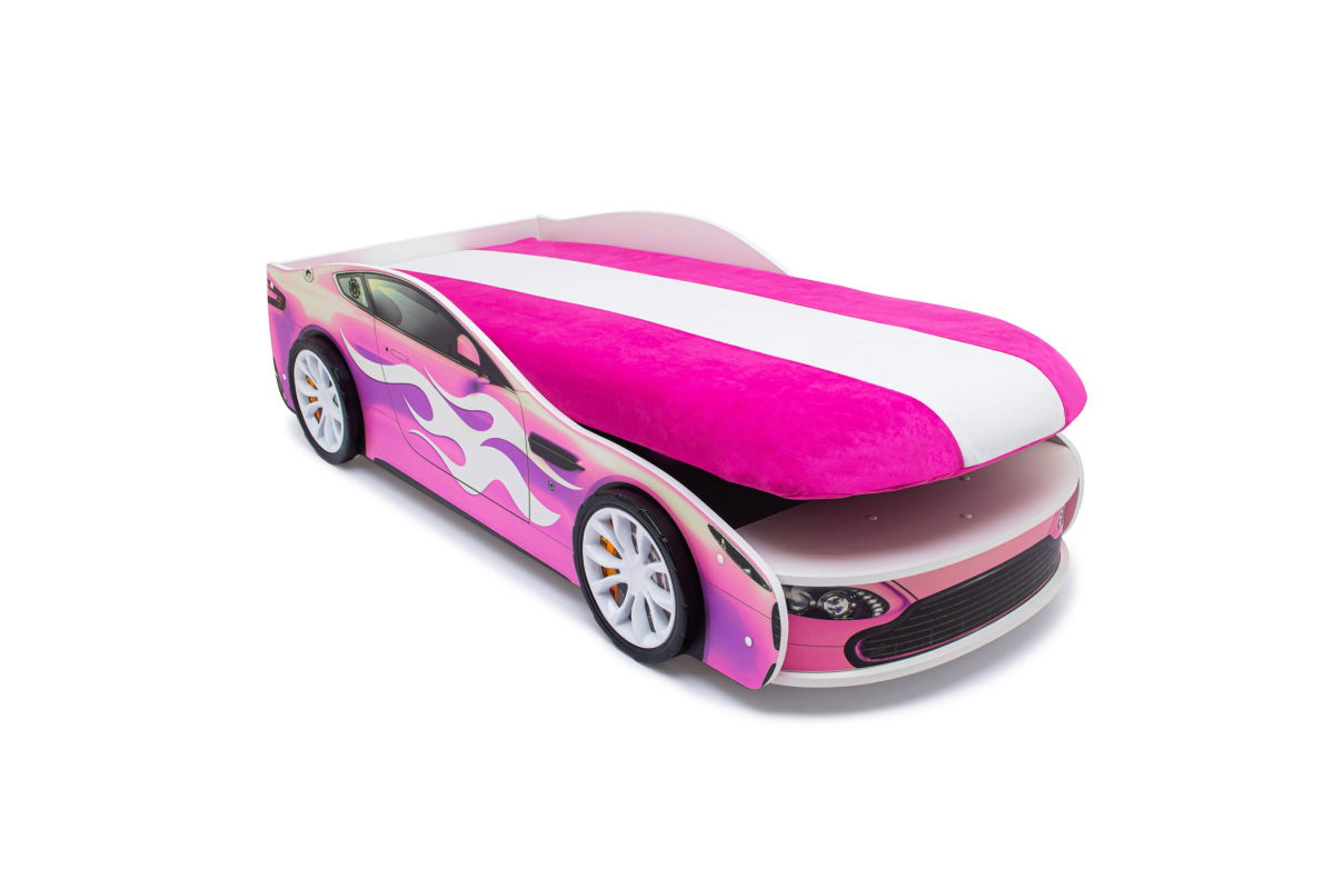 Кровать машина «Бондмобиль розовый» с подъемным механизмом с матрасом