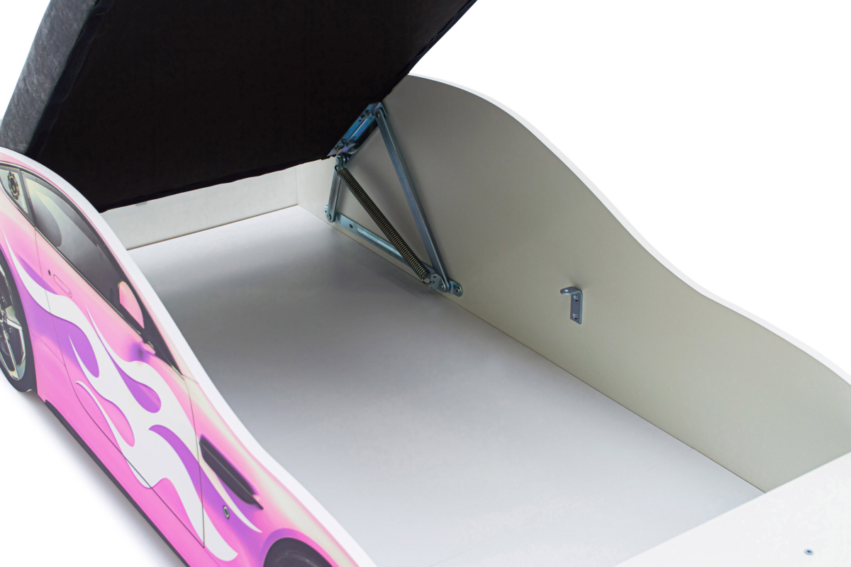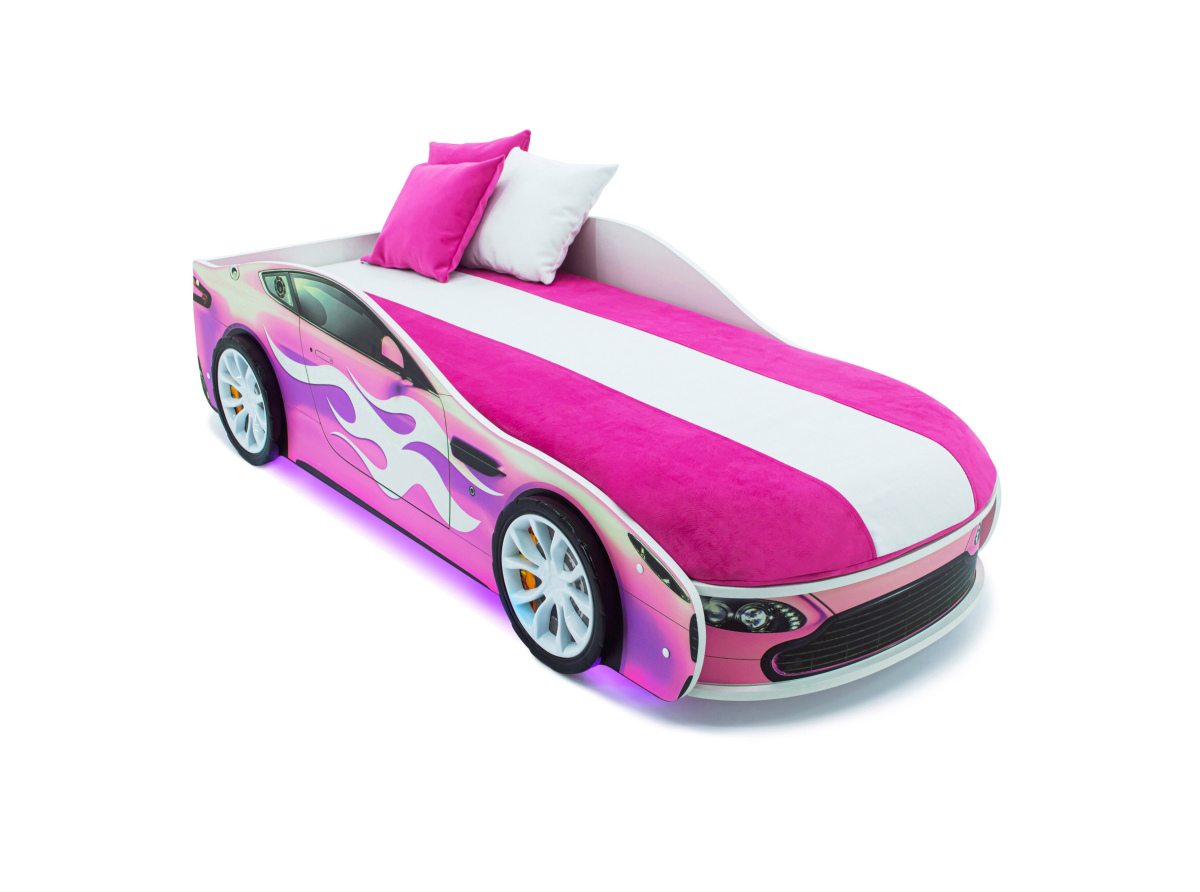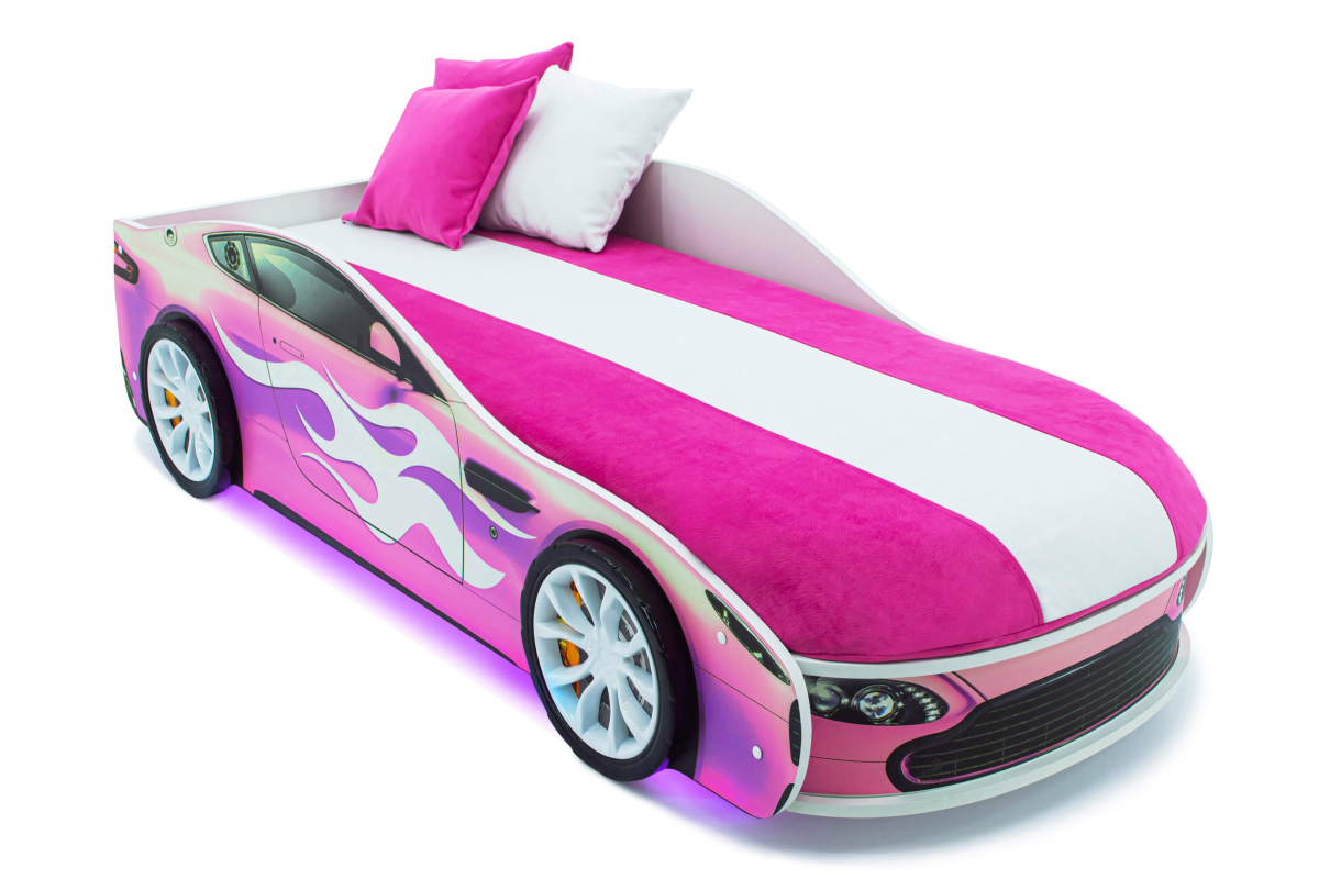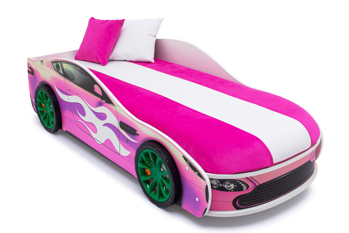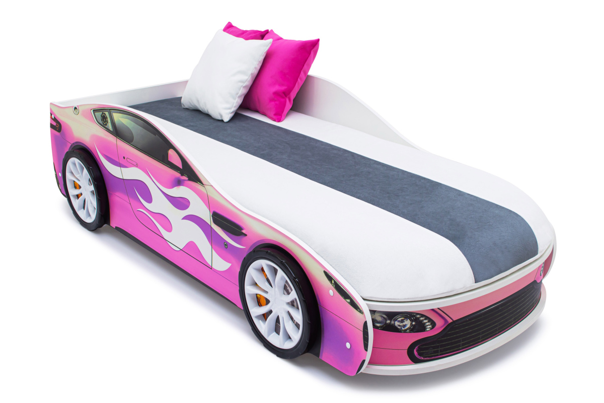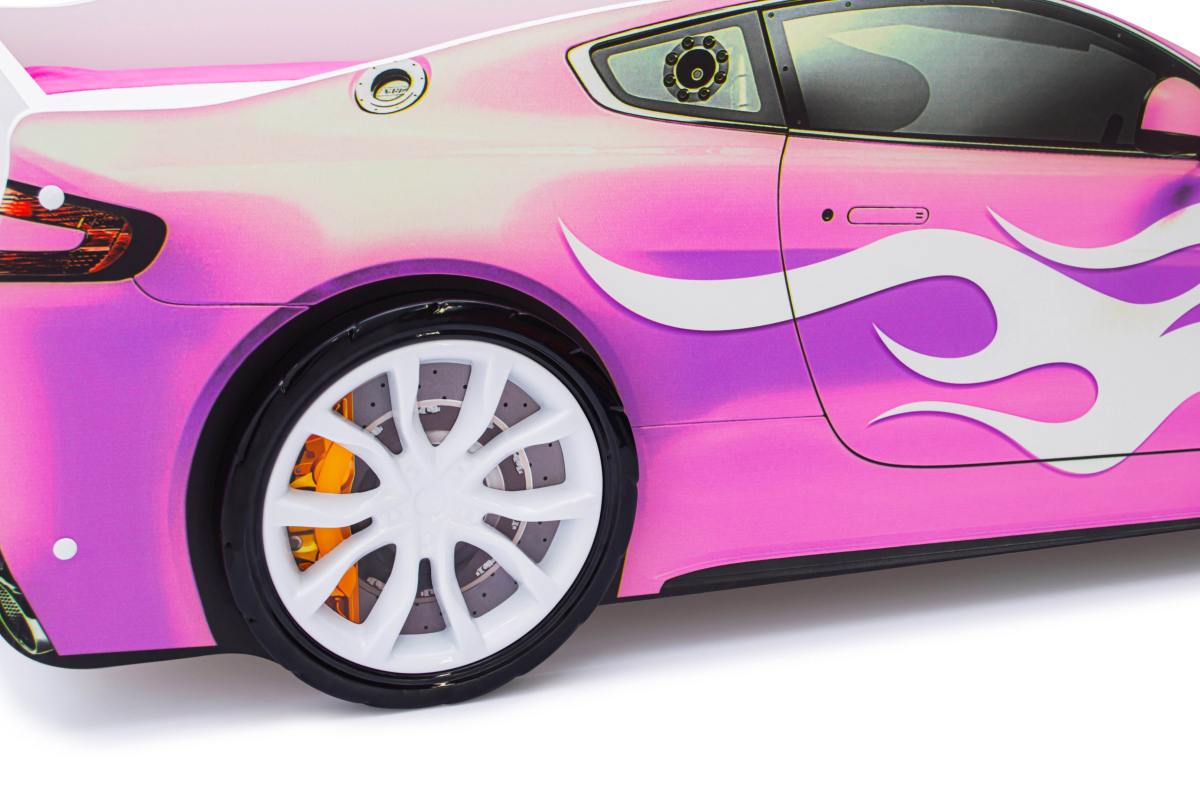 Кровать машина «Бондмобиль розовый» с подъемным механизмом с матрасом