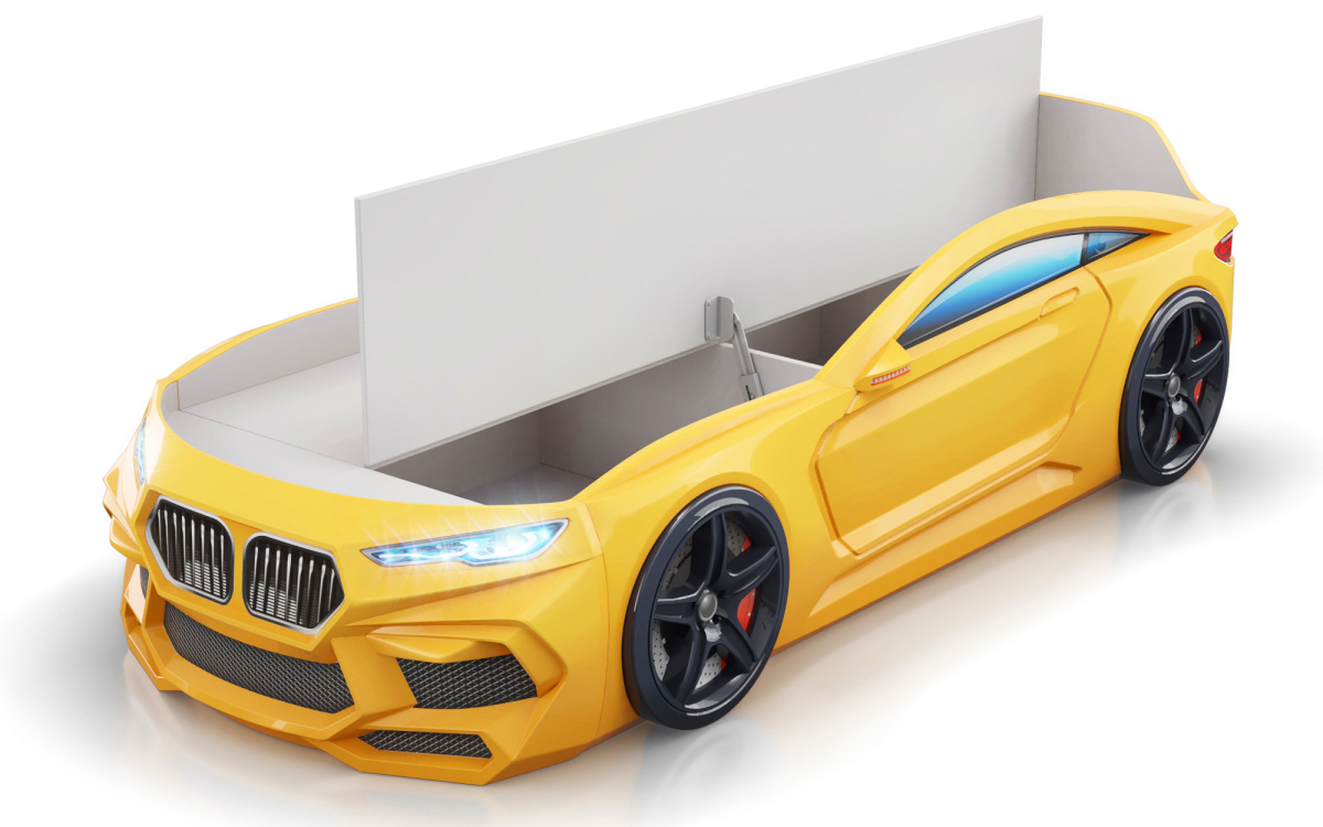 КРОВАТЬ МАШИНА 2+ ЖЕЛТЫЙ — ПОМОЖЕТ ВАМ ВОПЛОТИТЬ МЕЧТУ РЕБЕНКА О НАСТОЯЩЕМ ГОНОЧНОЙ АВТОМОБИЛЕ