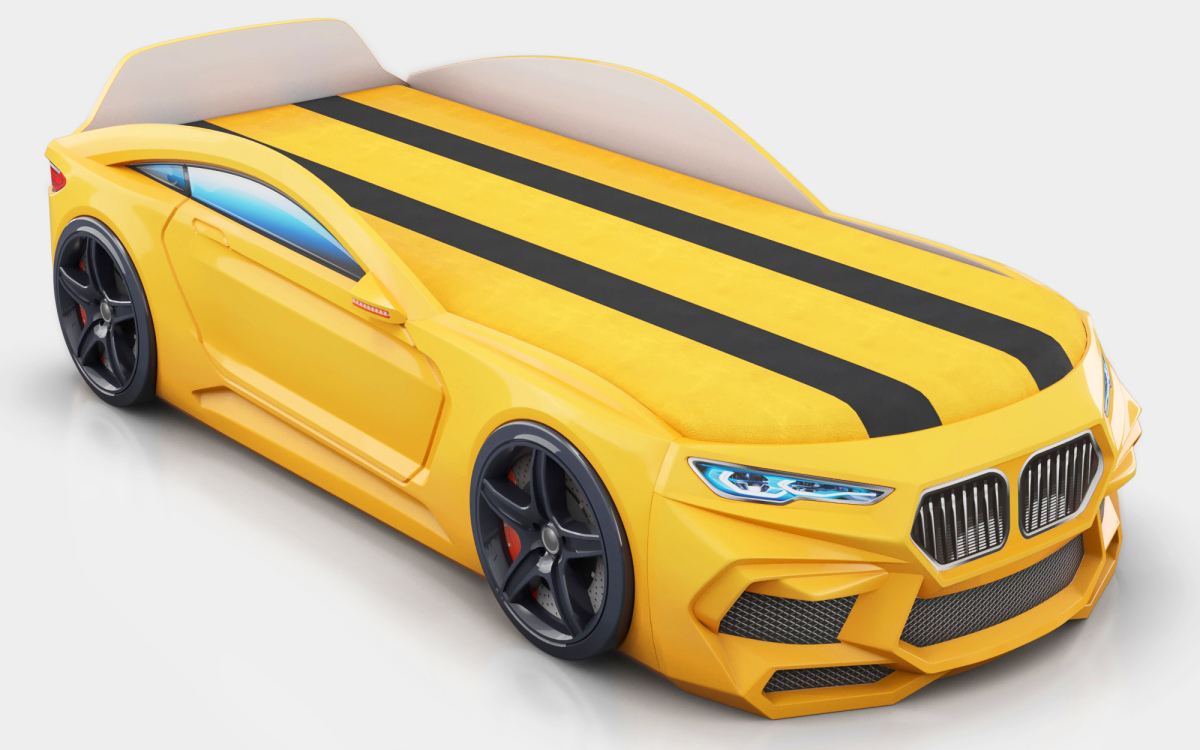 КРОВАТЬ МАШИНА 3+ ЖЕЛТЫЙ — ПОМОЖЕТ ВАМ ВОПЛОТИТЬ МЕЧТУ РЕБЕНКА О НАСТОЯЩЕМ ГОНОЧНОЙ АВТОМОБИЛЕ