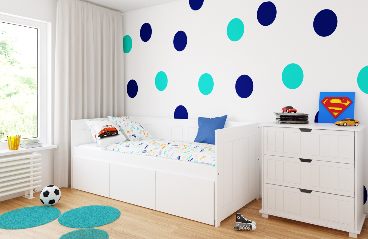 Детская мебель может быть изготовлена по индивидуальному заказу, при заказе вы можете менять длинну бортика, размер ящика и размер спального места исходя из габаритов детской комнаты и места для детской кровати.
