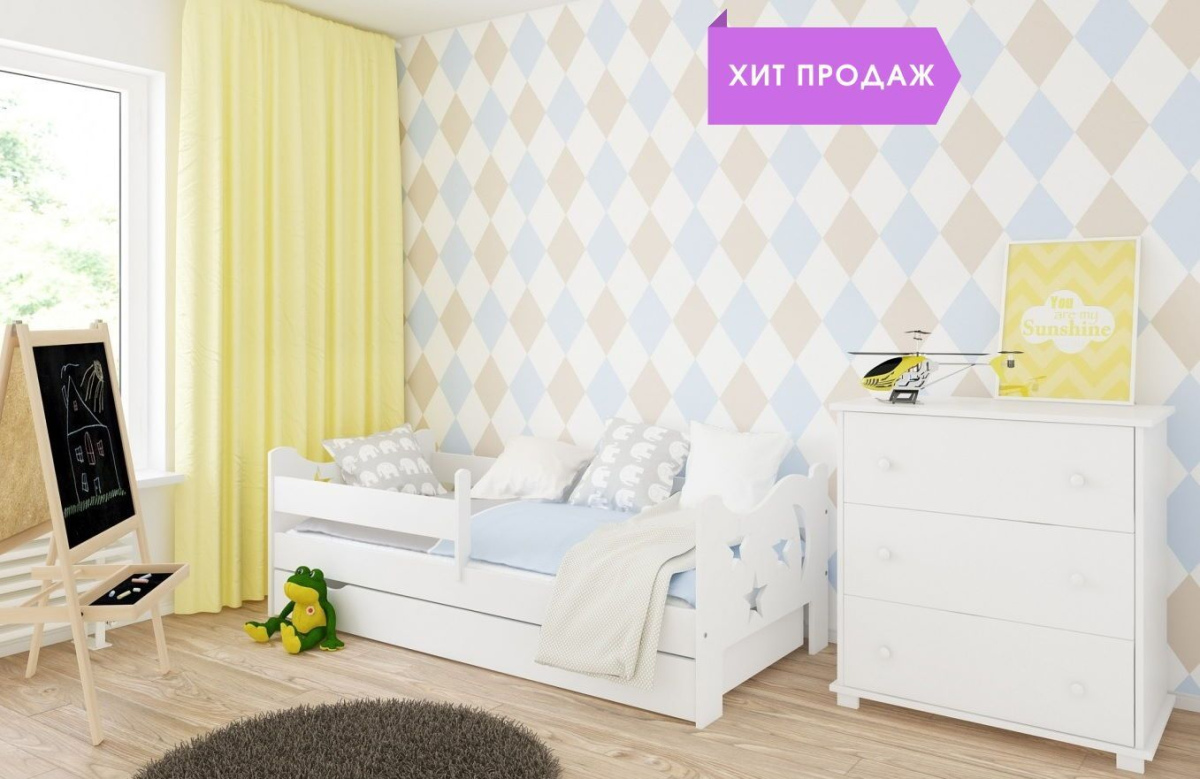 Детская мебель может быть изготовлена по индивидуальному заказу, при заказе вы можете менять длинну бортика, размер ящика и размер спального места исходя из габаритов детской комнаты и места для детской кровати.