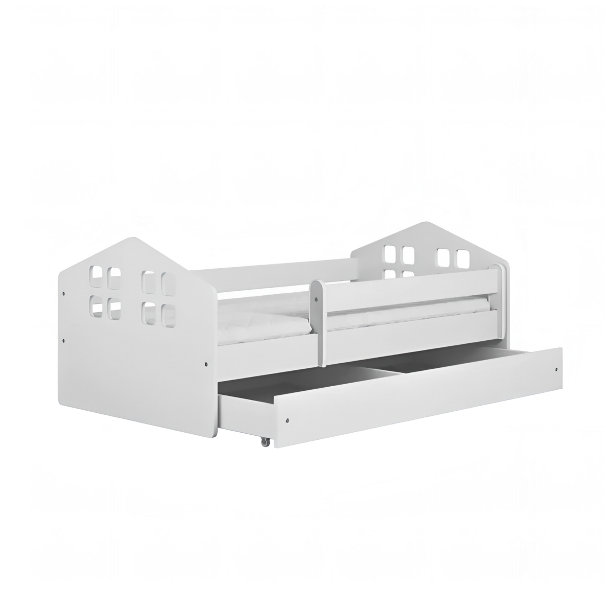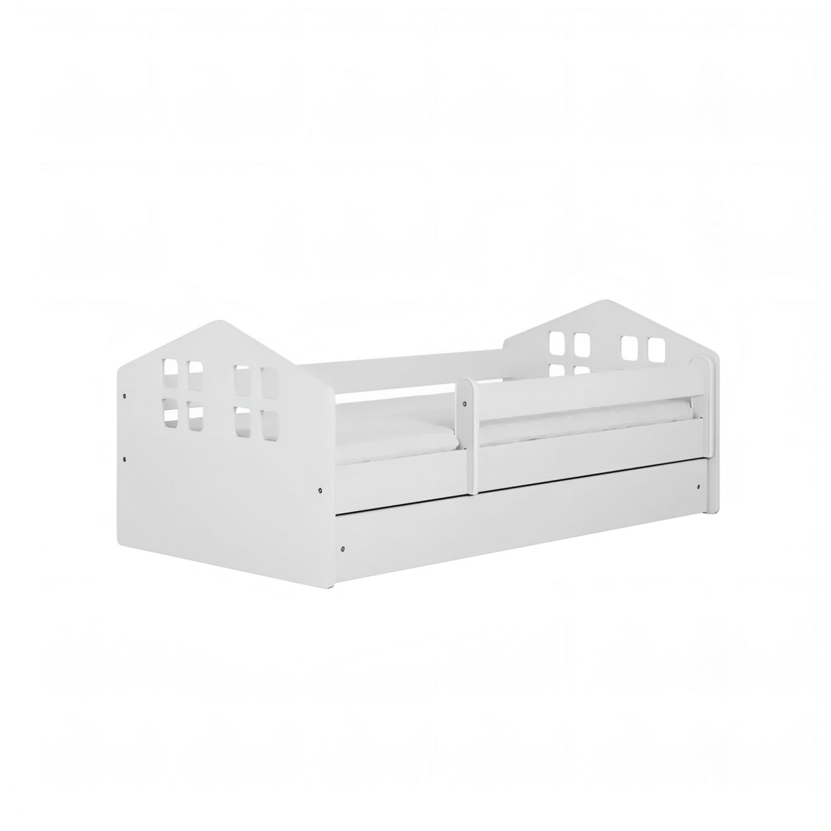 -Детская кровать в комплекте с съемными бортиками, которые обеспечат безопасный сон вашего ребенка. Бортики переставляются на любую сторону.