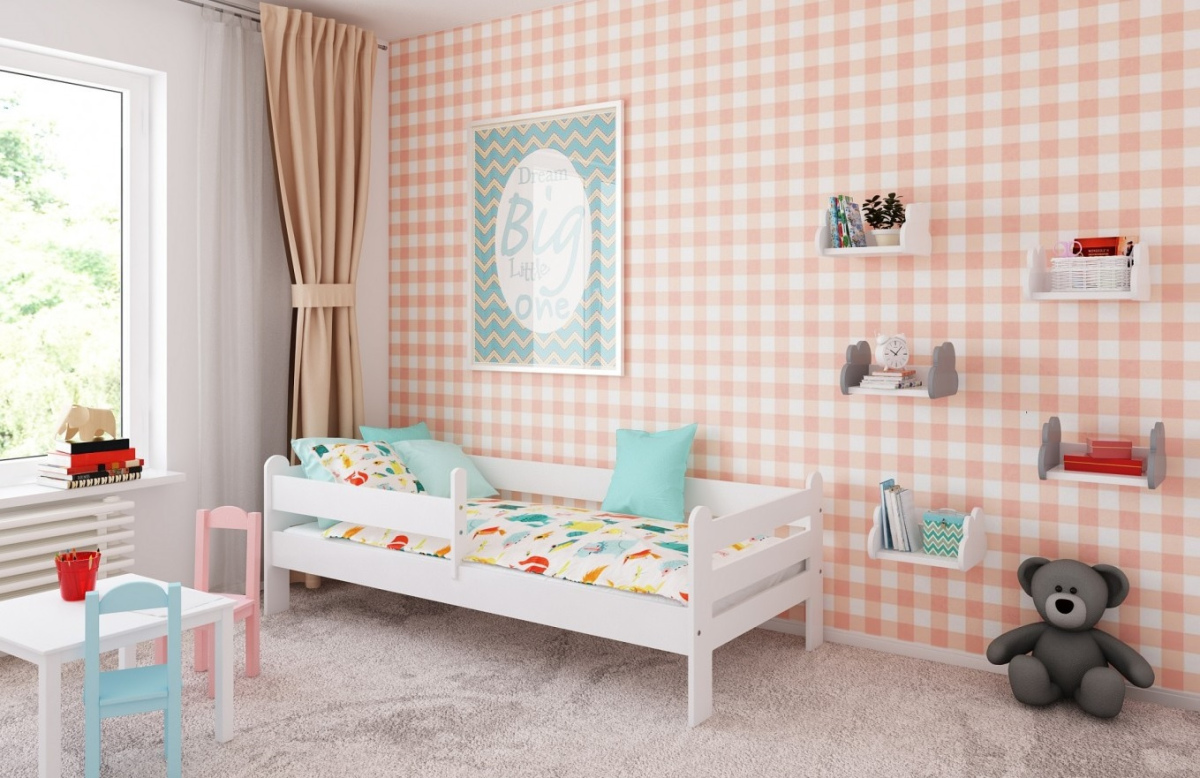 -Детская кровать в комплекте с съемными бортиками, которые обеспечат безопасный сон вашего ребенка. Бортики переставляются на любую сторону (длинный бортик по желанию может быть широким).